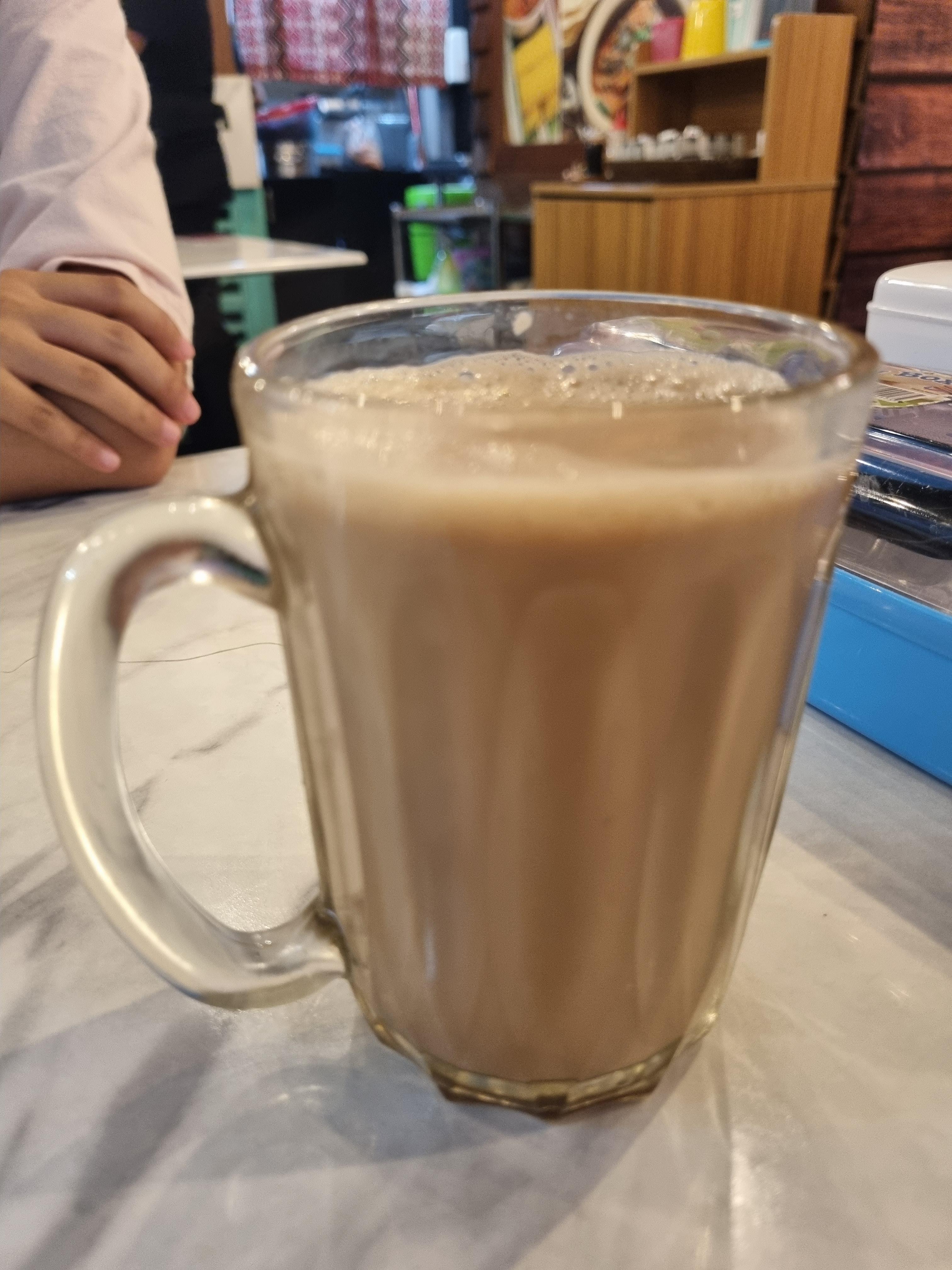 다른 곳에서 찾아본 바에 의하면 락사 입맛이 초심자에게는 잘 안맞을 수 있기 때문에 처음 먹어보는 사람은 무조건 커리 락사를 주문해보고, 입맛이 맞고 익숙해지면 나중에 아쌈 락사에 도전해보라는 글을 보았었다. 나시 르막은 몰랐는데 나시가 밥이라는 뜻이고, 르막이 기름, 지방이라는 뜻으로 나시르막에서 제공되는 밥이 코코넛 밀크를 넣어 짓기 때문에 그런 이름이 붙었다고 한다. 코코넛 밀크가 들어가서 그런지 밥이 참 적응안되는 초록색이었다 ^^. 이 때의 나는 오랜만에 동남아 여행이라 그런지 배 상태가 좋지 않은 상태여서 억지로 저녁을 먹었는데 그나마 나의 속을 달래주던 것이 테 타릭(Teh Tarik)이었다. 홍차와 연유로 만든 밀크티와 흡사한 것으로서 원래 밀크티를 좋아하는 내 입맛에 딱이었다. 그래서 지하 1층에 있는 슈퍼마켓에서 테타릭 티백과 올드커피하우스를 구매해버렸다.