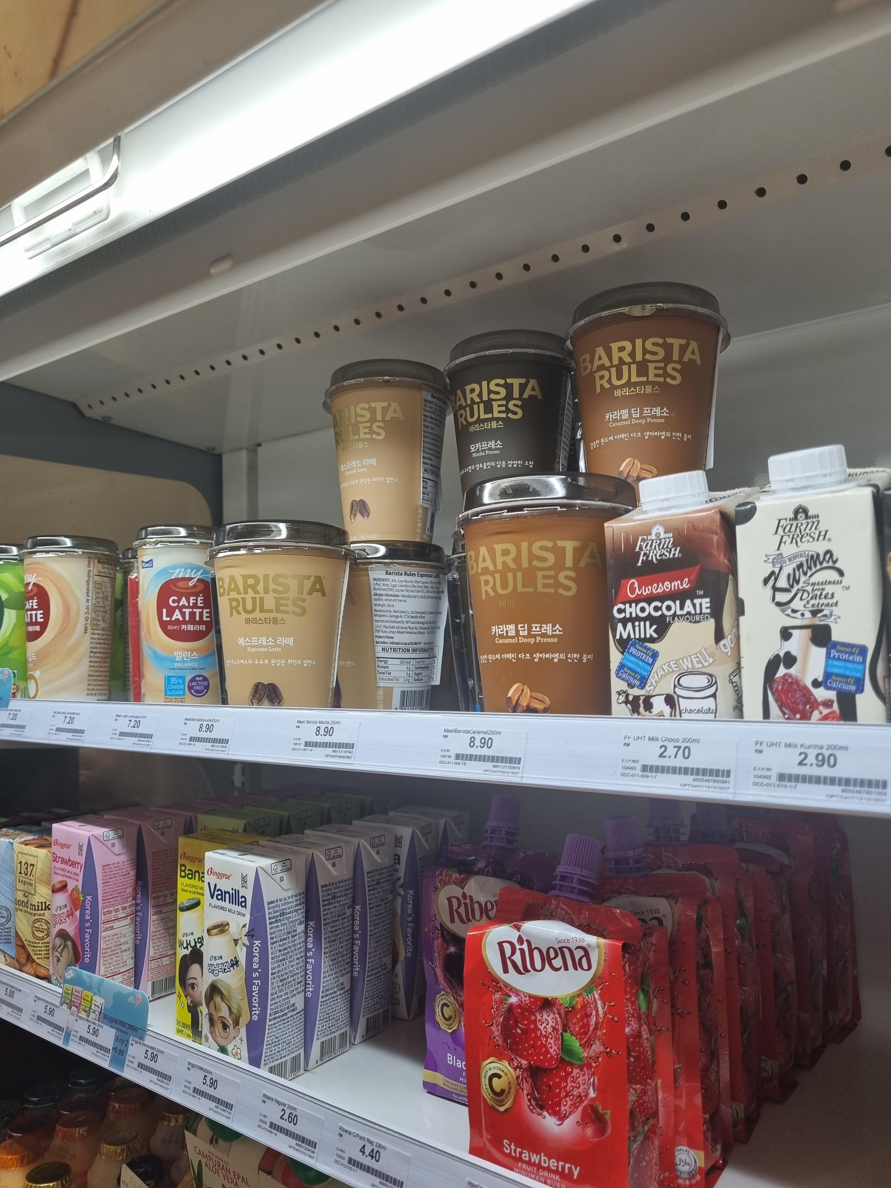 마지드 자멕(Masjid Jamek) 역은 상당히 복잡했는데, 여기서 Gombak 방향으로 가는 RapidKL (LRT) 지하철을 타야 페트로나스 타워가 있는 곳 (KLCC역에서 하차) 으로 이동이 가능하다. 우리나라도 어떤 지하철 환승역은 환승거리가 상당한데 이 곳이 딱 그렇다. 5호선으로 보이는 Gombak 방향으로 탑승을 위해서 꽤 많이 걸어야 했는데, 습한 곳에서 30분 남짓 걸으니 날이 흐려도 목이 마른터라 결국 눈에 보이는 매점에서 음료수를 사기로 하였다. 지하철 편의점인데도 우리나라 바리스타 커피를 팔고 있는게 정말 신기했다. 말레이시아는 한국, 일본 등 각종 서양 제품을 모두 만날 수 있는 정말 특별한 느낌이 든다. 가격 차이도 우리나라 편의점하고 비교하면 거의 비슷하다.